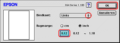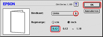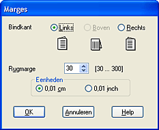 De werkelijke rugmarge kan afwijken van de opgegeven instellingen. Dit hangt af van de toepassing waarmee u werkt. Probeer daarom eerst een paar vellen uit om te zien wat het resultaat zal zijn, voordat u de volledige afdruktaak afdrukt.