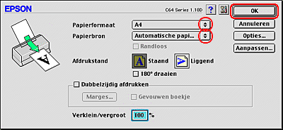 ![]() | Selecteer Stylus C64 bij Stel in voor. |