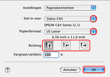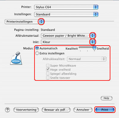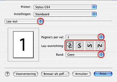 Instellingen van de printerdriver voor Mac OS X
