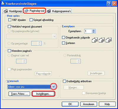 Hiermee kunt u een tekst of afbeelding afdrukken als watermerk.