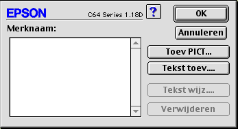 ![]() | Om een beeldbestand als watermerk te gebruiken, klikt u op Toev PICT. Geef het gewenste beeldbestand op en klik op Open. |