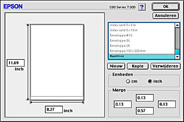 U kunt een afwijkend papierformaat definiëren. Daarvoor kunt u een compleet nieuw papierformaat definiëren, maar u kunt voor uw afwijkende papierformaat ook uitgaan van een reeds bestaand formaat. Raadpleeg het betreffende gedeelte hierna.