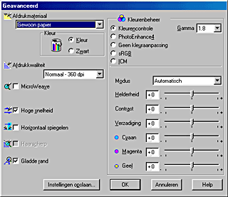 Deze methode zorgt ervoor dat de afgedrukte kleuren overeenkomen met de schermkleuren. ICM staat voor Image Color Matching (kleuraanpassing). |