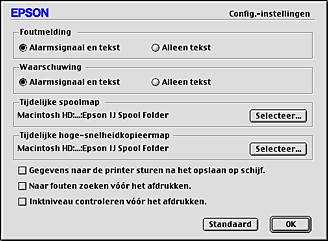 Geef aan op welke manier EPSON StatusMonitor u moet waarschuwen wanneer er zich een fout voordoet. |