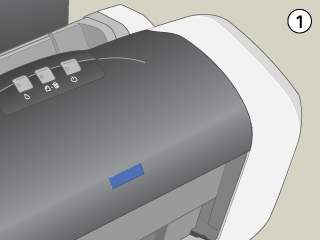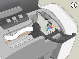 Druk op de inktknop . De printkop gaat naar de positie waar de cartridge kan worden vervangen en het aan-uitlampje begint te knipperen.