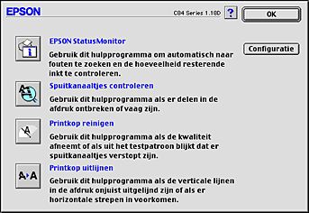 Als u op deze knop klikt, wordt het configuratievenster geopend. In dit venster kunt u de manier veranderen waarop de EPSON Status Monitor u waarschuwt als er een wijziging optreedt in de status van de printer. |