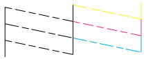 Als de kwaliteit niet goed is (zie illustratie), is er iets mis met de printer. Als er bijvoorbeeld stukken uit de afgedrukte lijnen ontbreken, is er wellicht sprake van een verstopt spuitkanaaltje of een onjuist uitgelijnde printkop.