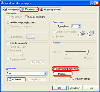 Klik op het tabblad Paginalay-out en schakel het selectievakje Dubbelzijdig afdrukken in.