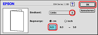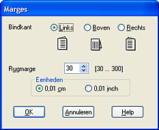 De werkelijke rugmarge kan afwijken van de opgegeven instellingen. Dit hangt af van de toepassing waarmee u werkt. Probeer daarom eerst een paar vellen uit om te zien wat het resultaat zal zijn, voordat u de volledige afdruktaak afdrukt.