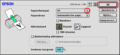 ![]() | Geef de gewenste instelling op bij Papierformaat. |
