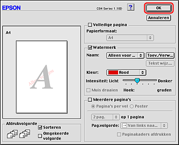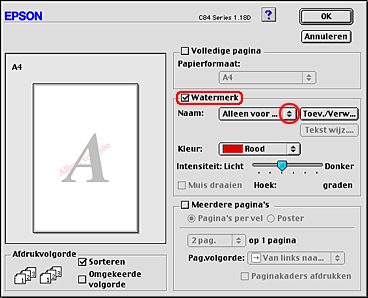 Watermerken afdrukken onder Mac OS 8.6 en 9.x