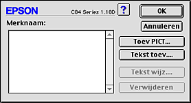 ![]() | Om een beeldbestand als watermerk te gebruiken, klikt u op Toev PICT. Geef het gewenste beeldbestand op en klik op Open. |
