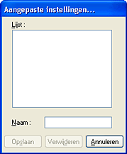Als u uw geavanceerde instellingen wilt opslaan in de lijst Aangepaste instellingen, klikt u op Instellingen opslaan. Het dialoogvenster Aangepaste instellingen wordt dan weergegeven.