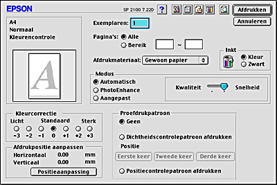 Selecteer EPSON Stylus Photo 2100 in de keuzelijst Naam en klik op Eigenschappen (Properties).