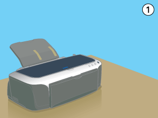 Verwijder de papiersteun en klap de uitvoerlade omlaag. Zet nu de printer aan.