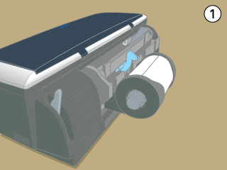 Volg de onderstaande instructies voor het plaatsen van de papierrolhouder en het laden van de rol.