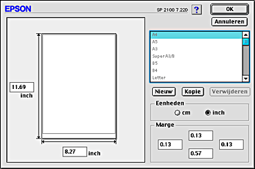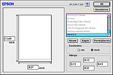 ![]() | Typ een unieke naam voor het papierformaat in de lijst Papierformaat. |