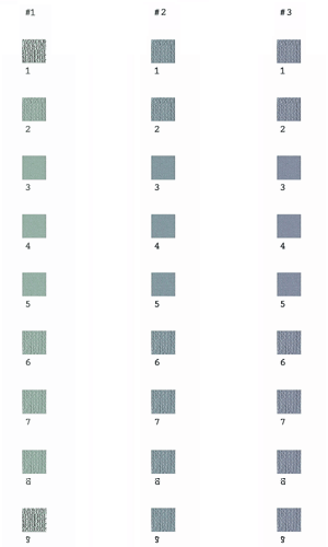 De volgende afbeeldingen tonen de tweede reeks testpatronen die worden afgedrukt.