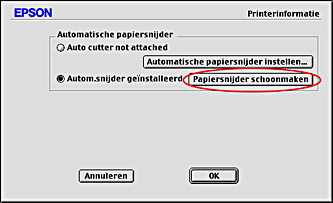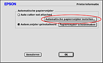 Zorg ervoor dat het selectievakje Automatische papiersnijder geïnstalleerd is ingeschakeld.