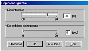 Als u de hoeveelheid inkt en de droogtijd wilt aanpassen, klikt u op Papierconfiguratie in het dialoogvenster Geavanceerd. Het dialoogvenster Papierconfiguratie verschijnt.
