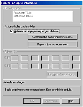 De configuratie van uw systeem bepaalt of de informatie in het dialoogvenster Printer- en optie-informatie automatisch wordt geactualiseerd of handmatig dient te worden ingevoerd.