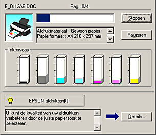 U kunt het afdrukken annuleren met behulp van de voortgangsbalk of de EPSON Spool Manager. Raadpleeg het betreffende gedeelte voor instructies.