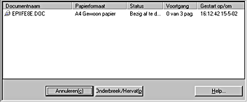 Dit venster geeft de voortgang van de huidige afdruktaak aan en bevat informatie over de printerstatus wanneer communicatie in twee richtingen tussen de printer en de computer tot stand is gebracht. In dit venster verschijnen bovendien foutberichten en nuttige tips voor het afdrukken. Raadpleeg het betreffende gedeelte hierna.