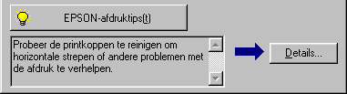 In het tekstvak onderaan het venster van de voortgangsbalk worden tips weergegeven voor een optimaal gebruik van uw EPSON-printersoftware. Er verschijnt een nieuwe tip om de 30 seconden. Als u meer informatie wilt over een tip die wordt weergegeven, klikt u op Details.