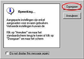 ![]() | Klik op Geavanceerd op het tabblad Hoofdgroep. Als een opmerking wordt weergegeven (zie illustratie), klikt u op Doorgaan (Continue). Het tabblad Hoofdgroep wordt nu uitgebreid met geavanceerde instellingen. |