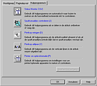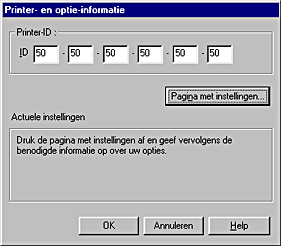 Met dit hulpprogramma kan de printerdriver de configuratie van de printer controleren. Tevens kunt u hiermee specifieke informatie over de printer opvragen, zoals het identificatienummer van de printer.