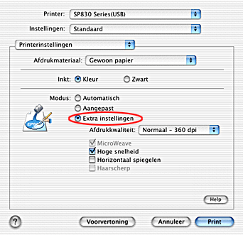 ![]() | Selecteer Extra instellingen bij Modus in het afdrukvenster. |