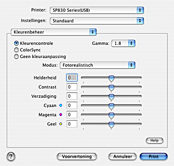 ![]() | Selecteer de optie Kleurenbeheer in het venstermenu van het afdrukvenster. Het volgende dialoogvenster verschijnt. |