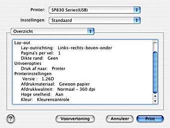 Door in het afdrukvenster de optie Overzicht te selecteren kunt u de instellingen van het afdrukvenster nog eens nakijken.