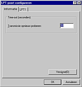 Als u het dialoogvenster Poortconfiguratie (Port Configuration) wilt openen, klikt u op Start, wijst u naar Instellingen (Settings) en klikt u op Printers. Selecteer vervolgens uw printer en klik in het menu Bestand (File) op Eigenschappen (Properties). De printerdriver wordt geopend. Klik op het tabblad Poorten (Ports) en klik vervolgens op Poort configureren (Configure Port). Het volgende dialoogvenster verschijnt.