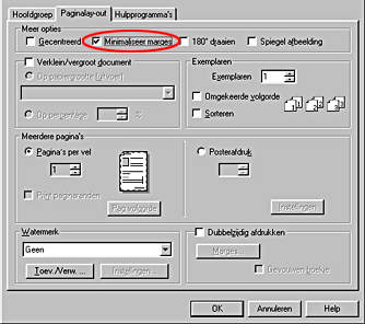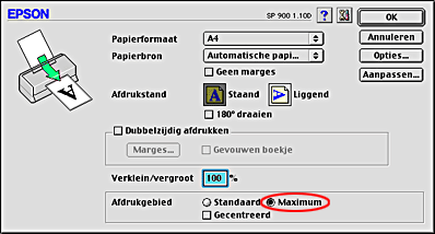 Als het papier gekruld is, strijk het dan glad in tegenovergestelde richting voordat u het in de printer laadt. Als u afdrukt op gekruld papier, kunnen er vegen ontstaan op de afdruk, met name als het selectievakje Minimaliseer marges is ingeschakeld bij Meer opties op het tabblad Paginalay-out (Windows) of wanneer Maximum is ingeschakeld bij Afdrukgebied in het dialoogvenster voor de pagina-instelling (Macintosh).