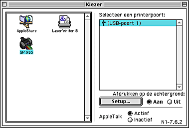 Kies in het Apple-menu de Kiezer (Chooser), klik op het pictogram van uw printer en selecteer vervolgens de poort waarop de printer is aangesloten.