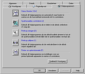 Met dit hulpprogramma kan de printerdriver de configuratie van de printer controleren. Tevens kunt u hiermee specifieke informatie over de printer opvragen.