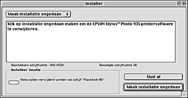 Selecteer Maak installatie ongedaan (Uninstall) in het menu linksboven in het scherm en klik op Maak installatie ongedaan (Uninstall).