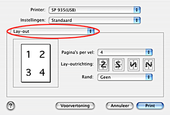 Selecteer Lay-out in het venstermenu van het afdrukvenster.