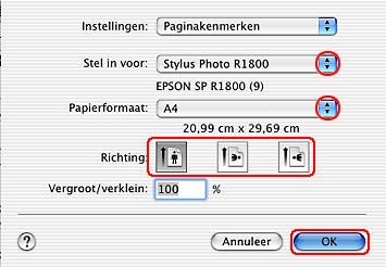 Geef de gewenste instellingen op bij Papierformaat en Richting.