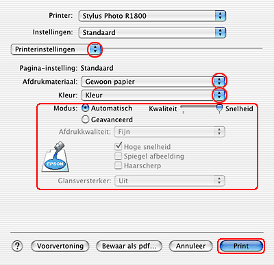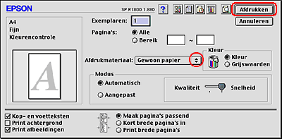 Selecteer Stylus Photo R1800 bij Printer en geef de gewenste instellingen op bij Aantal en pagina's.