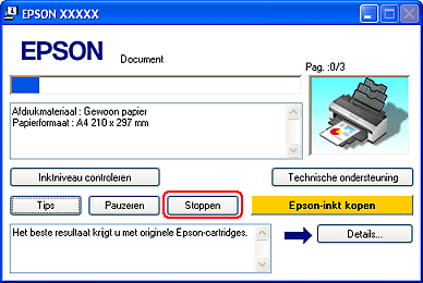 Op het moment waarop u begint af te drukken, verschijnt het venster met de voortgangsbalk op het scherm van uw computer.