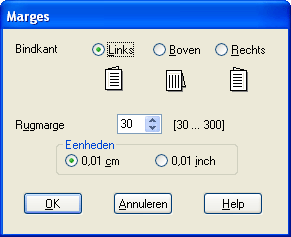 Geef de rand aan waar het papier wordt gebonden. U kunt kiezen uit Links, Boven en Rechts.