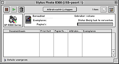 Nadat u een afdruktaak hebt verzonden, verschijnt de knop EPSON Stylus Photo R300 Series op de taakbalk. Klik op deze knop om EPSON Spool Manager te openen.