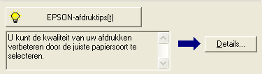In het tekstvak onderaan het venster van de voortgangsbalk worden tips weergegeven voor een optimaal gebruik van uw Epson-printersoftware. Er verschijnt een nieuwe tip om de 30 seconden. Als u meer informatie wilt over een tip die wordt weergegeven, klikt u op Details.