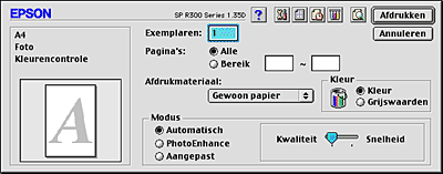 Hiermee schakelt u het bidirectioneel afdrukken in. Dit wil zeggen dat de printer zowel van links naar rechts als van rechts naar links afdrukt. Met Hoge snelheid wordt sneller afgedrukt, maar wel met een lagere kwaliteit.