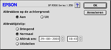 ![]() | Selecteer bij Afdruktijdstip de optie Dringend, Normaal, Afdruk om of Uitstellen. |