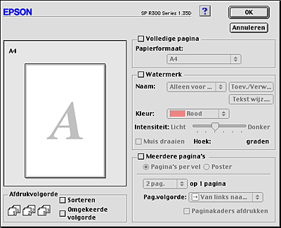Hiermee kunt u een tekst of afbeelding afdrukken als watermerk. |