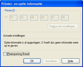 Afhankelijk van de configuratie van uw systeem kan de informatie in het dialoogvenster Printer- en optie-informatie automatisch worden bijgewerkt. Het is echter ook mogelijk dat u de gegevens met de hand moet invoeren.