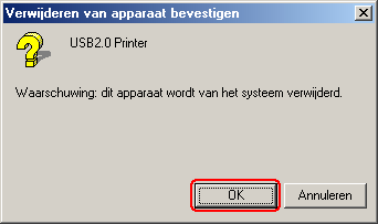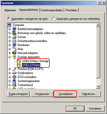 Selecteer onder Overige apparaten (Other devices) de optie USB2.0 MFP of EPSON Stylus Photo R300 en klik vervolgens op Verwijderen (Remove). Klik vervolgens op OK.